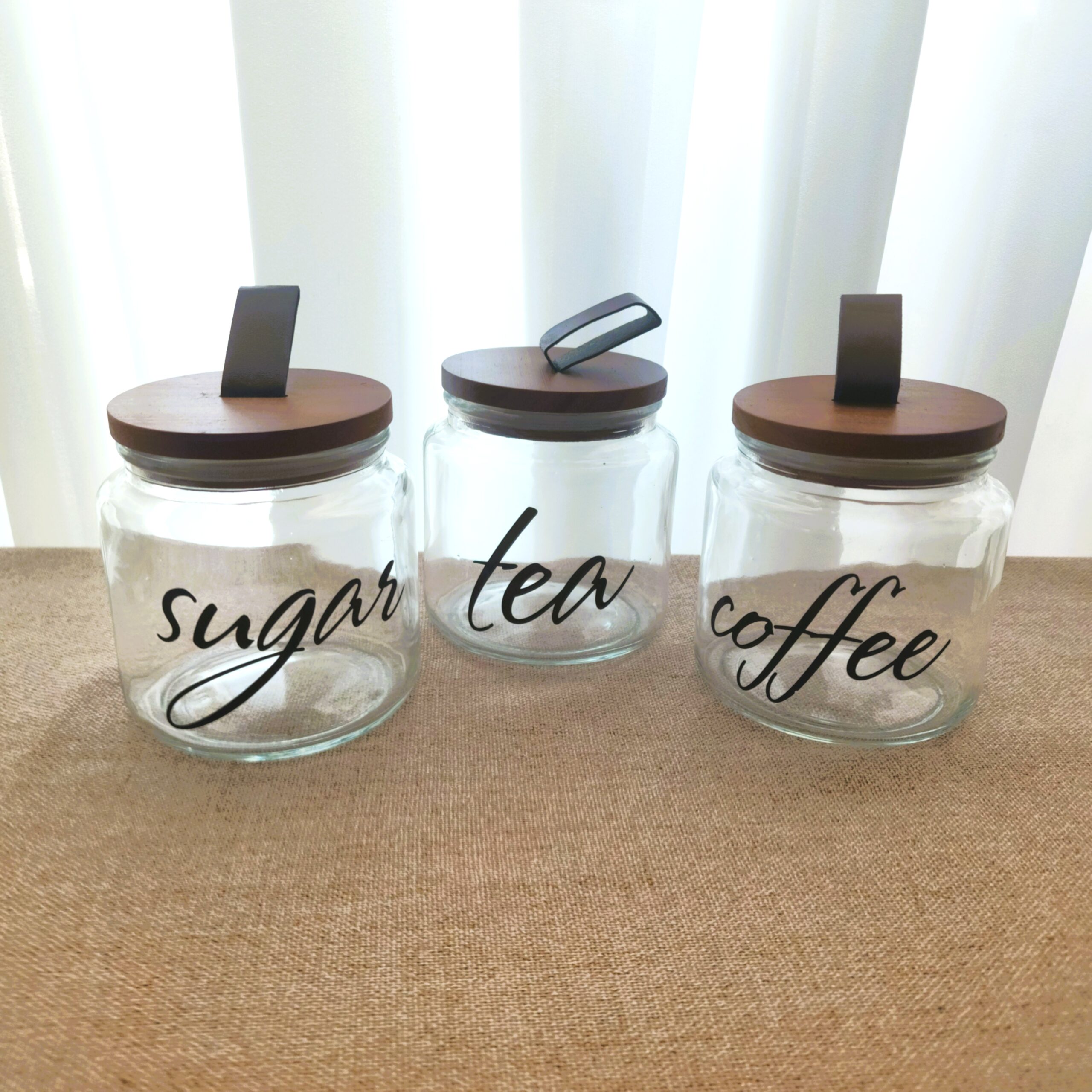 מעוצב ומסודר לכל פינת קפה בבית או במשרד. הסט כולל שלוש צנצנות זכוכית איכותיות עם כיתוב אלגנטי בשחור Coffee, Tea, Sugar.